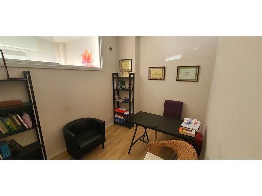 L'immobile è composto da vano ingresso, sala d'attesa, 5 stanze, 2 bagni di cui uno con doccia e ripostiglio.