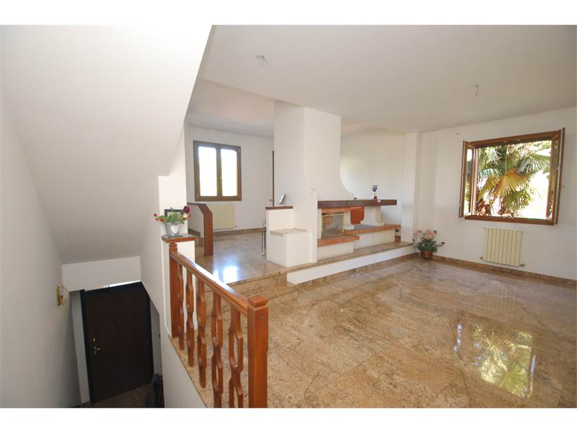 Al piano primo doppio soggiorno su due livelli con camino e balcone, una zona disimpegno con armadio muro a ripostiglio, cucina abitabile anch'essa con balcone e piacevole vista e bagno al piano.