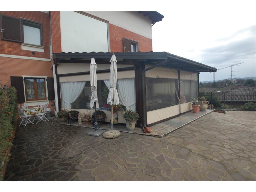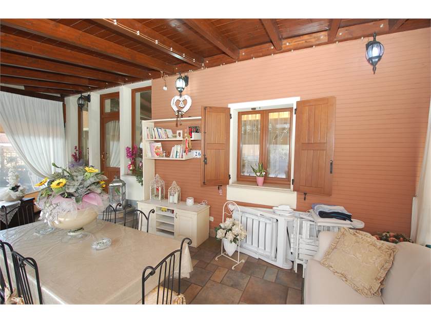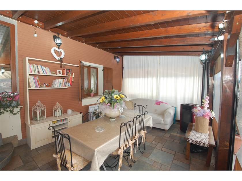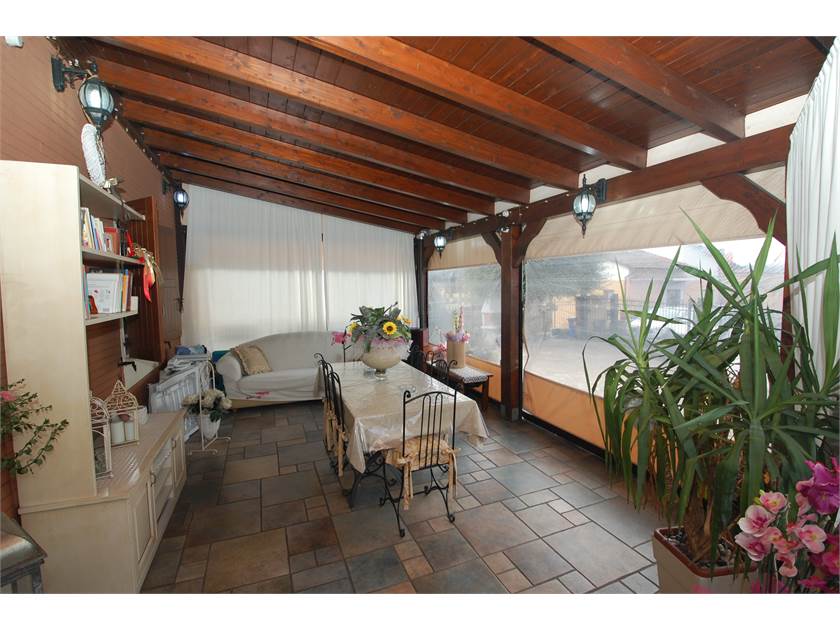 Nella parte anteriore dell'abitazione troviamo una tettoia regolarmente costruita che grazie alla presenza di teloni laterali consente di sfruttare a pieno lo spazio esterno anche nei periodi un pò più freddi.