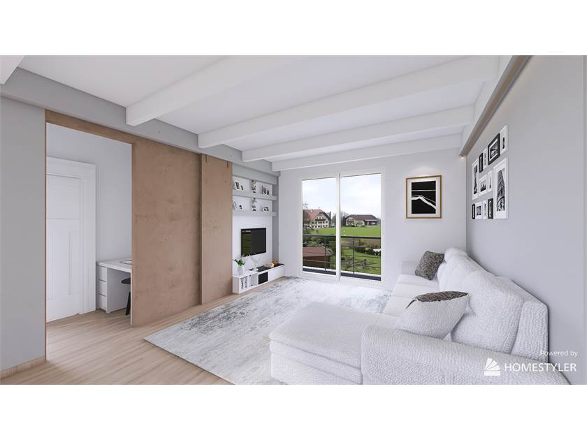 L'immobile è composto da ingresso su soggiorno con cucina a vista che grazie ad ampia vetrata si affaccia su terrazzo esposto a sud ovest, disimpegno, camera da letto matrimoniale anch'essa con affaccio sul terrazzo, con cabina armadi e bagno privato. Completa la zona giorno una lavanderia ed un bagno ed altro terrazzino loggiato nel soggiorno.
