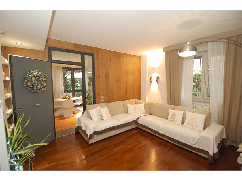 Completano la proprietà ampio garage con lavanderia al piano interrato e 2 posti auto esterni e giardino privato di circa 200 mq.