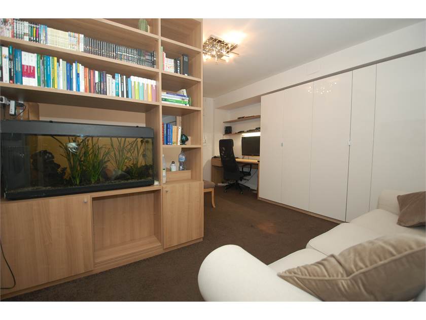 Al piano interrato abbiamo altra camera/ studio, bagno e ripostiglio sotto scala.